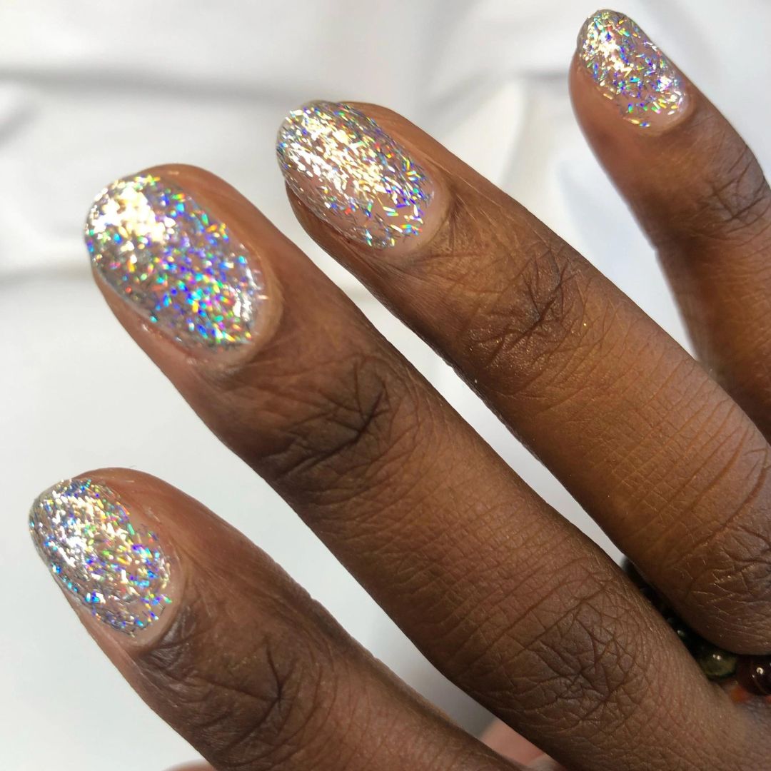 Sweet, sparkly, and totally festive. Metallic red, crisp white, and silver holo glitters bring full candy-cane energy, holiday nails, but LOUD.