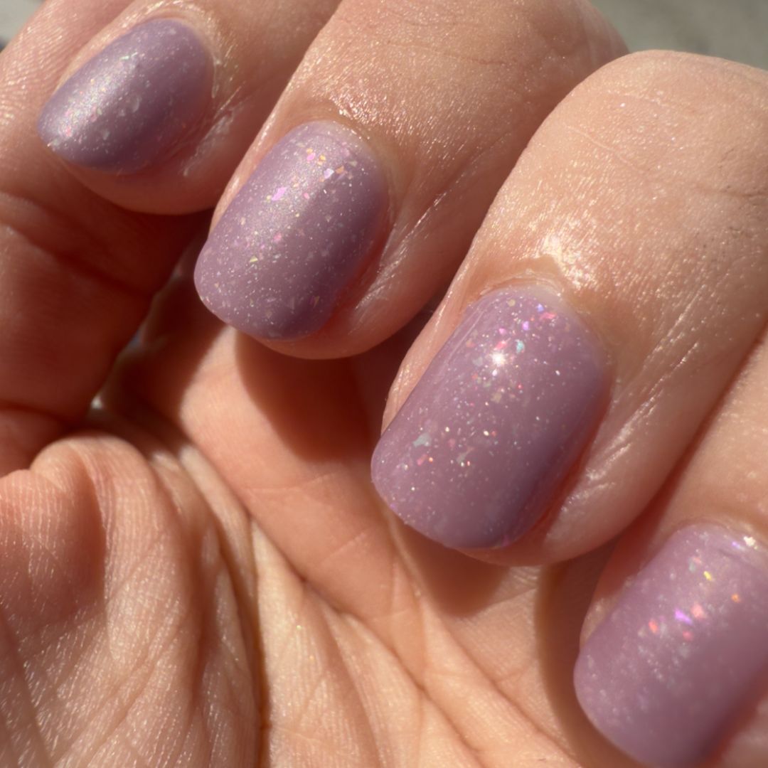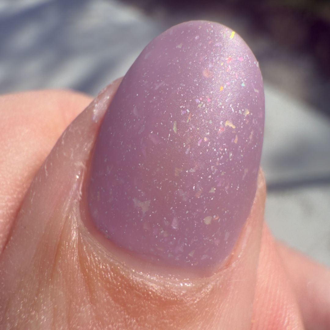 Artemisia has long been tied to ritual and dreams, valued for its protective and mystical qualities. This polish is a dusty lavender crelly scattered with holographic flakes and tiny opal sparks. Soft but complex, it carries the feeling of endurance found in quiet places where growth often begins.