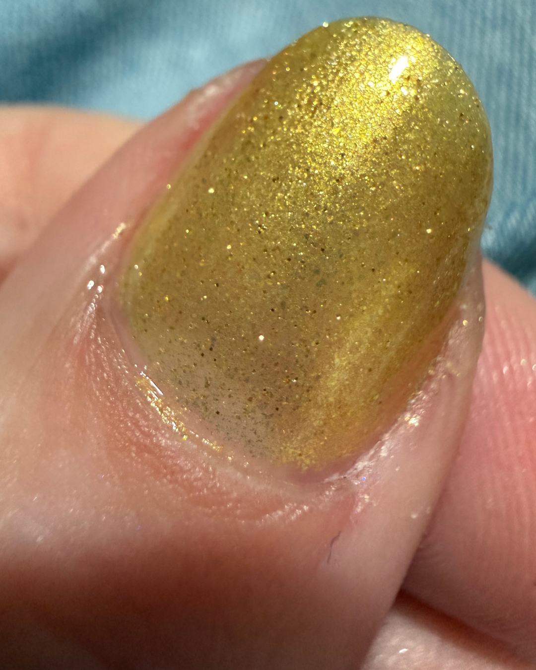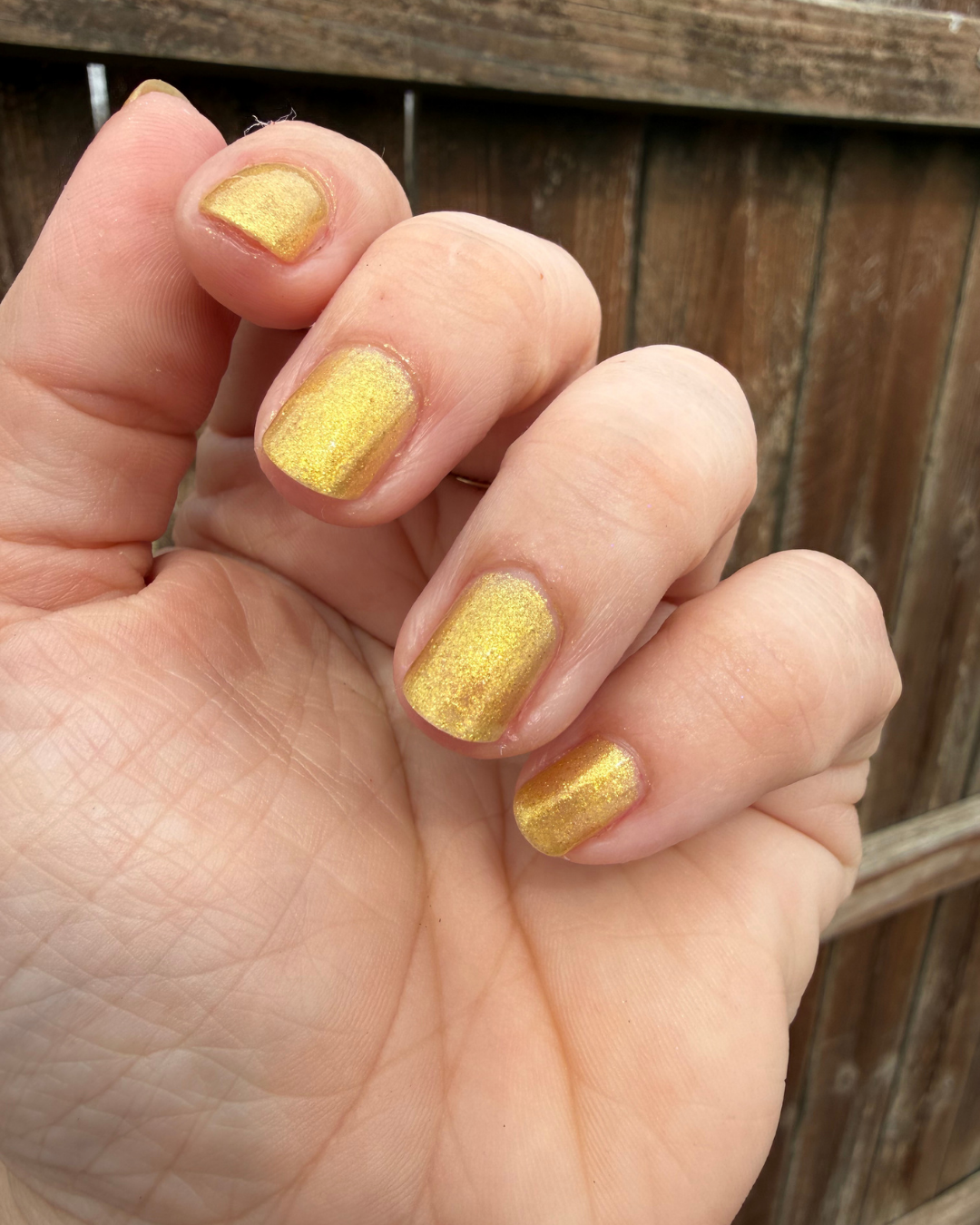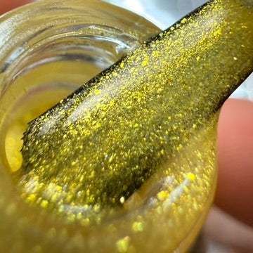 A warm gold metallic that feels regal but still wearable. Smooth, reflective, and just flashy enough to catch the light without trying too hard.