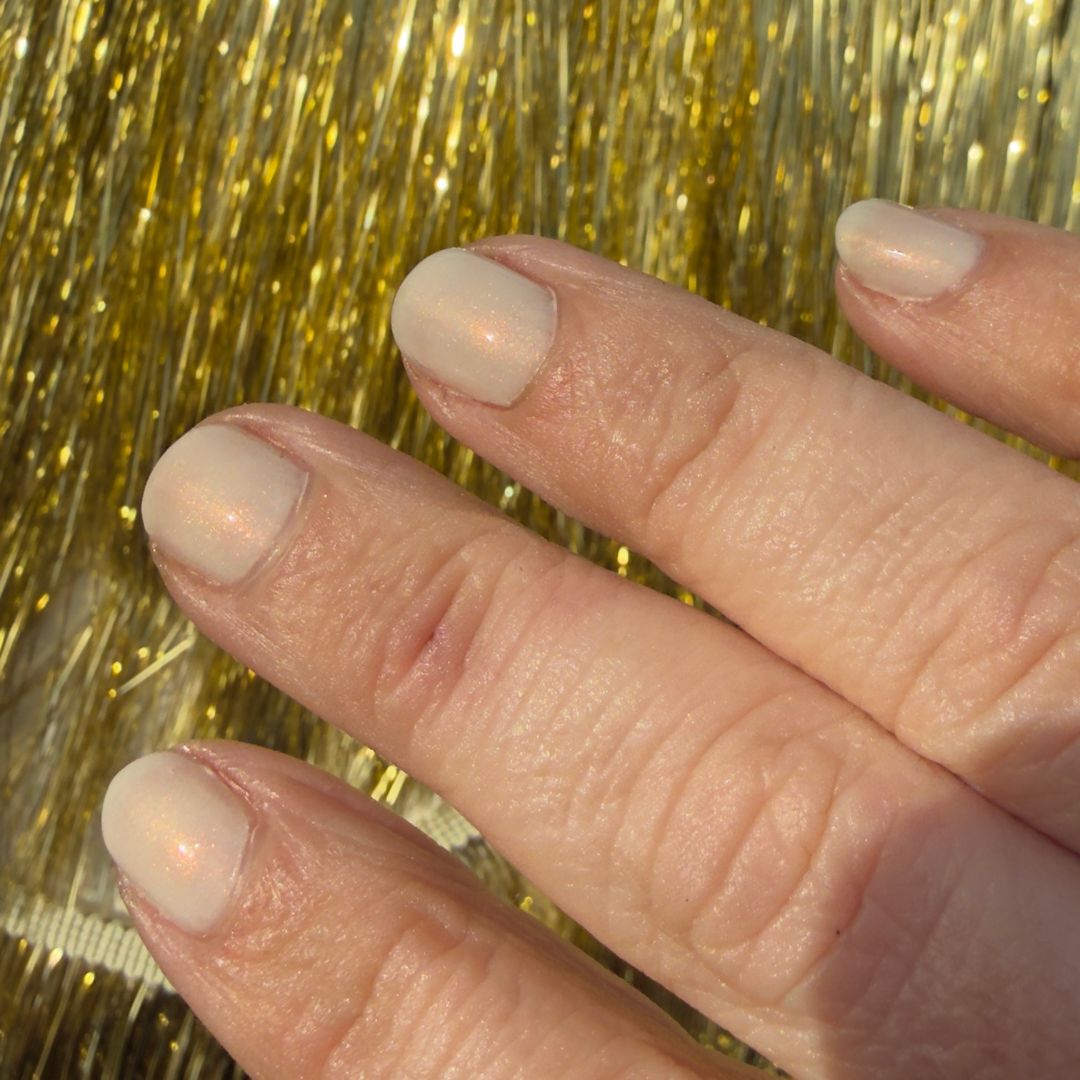 A soft, foggy white with a gentle copper shimmer and tiny gold sparks that catch the light as you move. Calm and creamy, like the part of the drink that makes everything feel finished. Easy to wear, easy to reach for, and unexpectedly cozy.