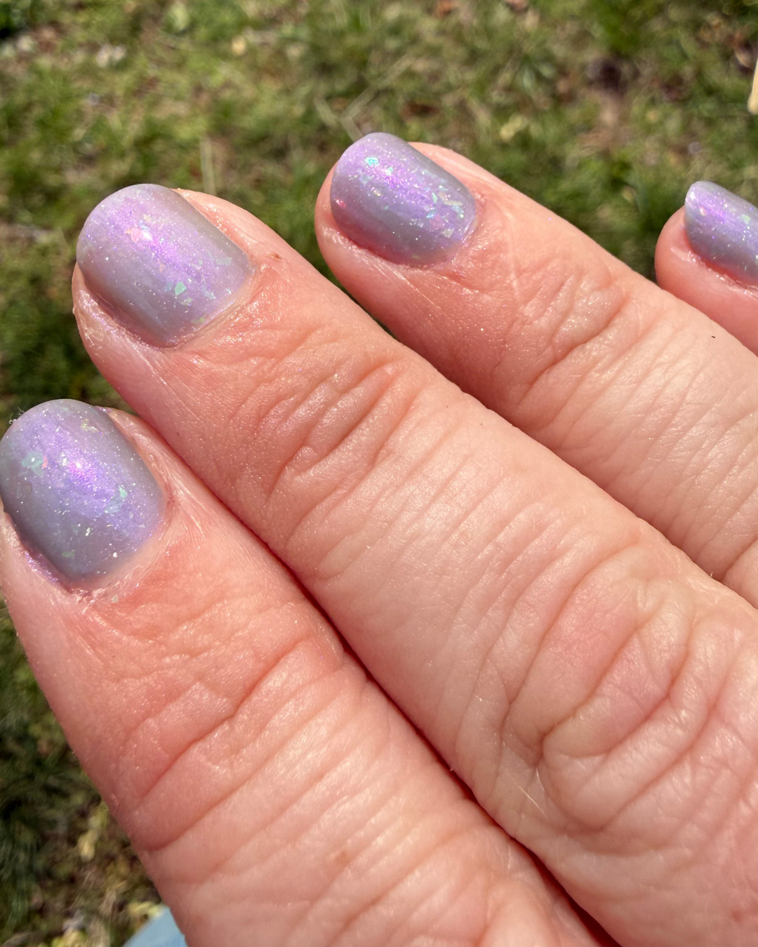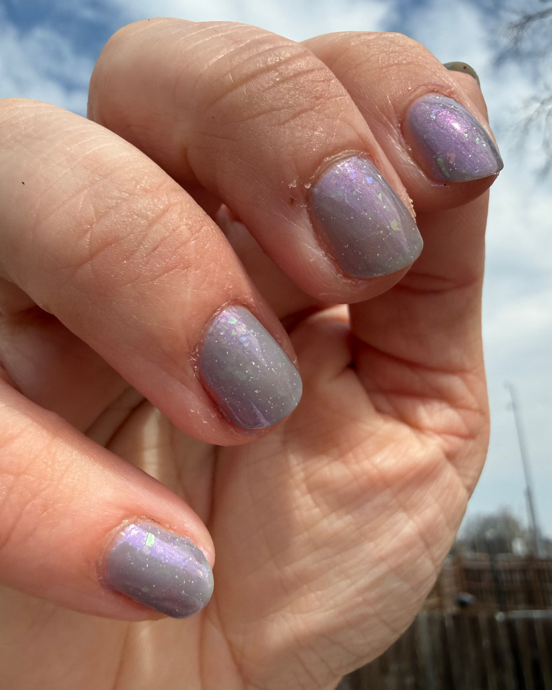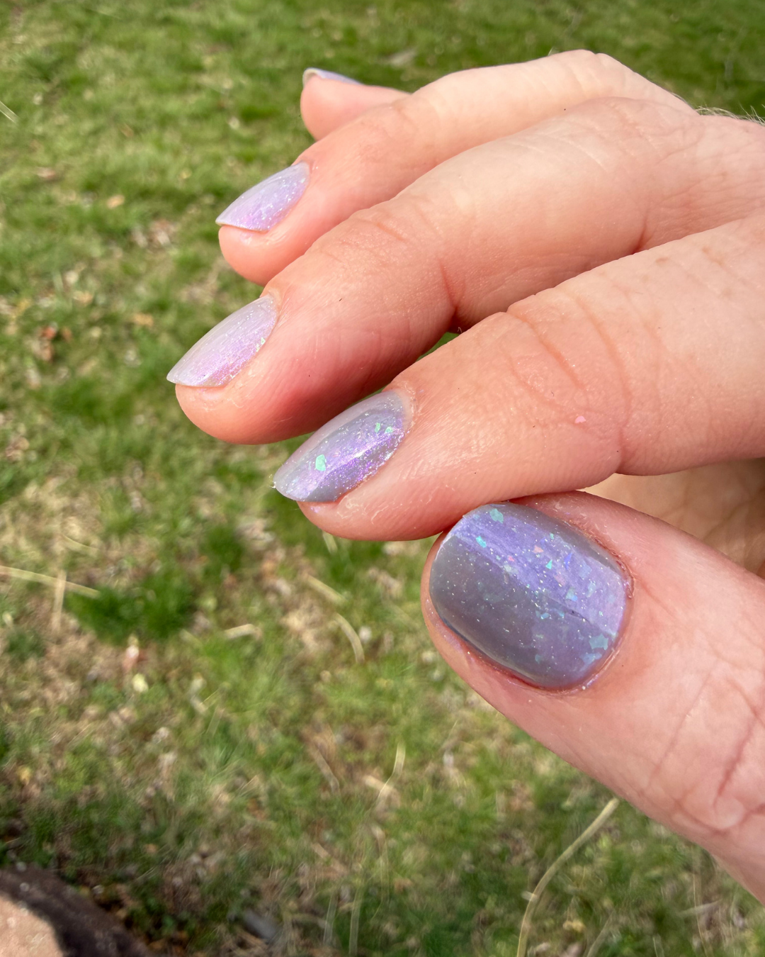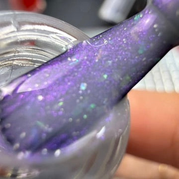 A moody blue-grey with a soft glow that shifts as you move. Packed with aurora shimmer, holo, and iridescent flakes, this one feels a little otherworldly in the best way.